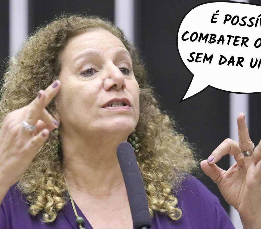 “É possível combater o crime sem dar um tiro” – Jandira Feghali, deputada federal (PCdoB-RJ). Sim, tudo se resolve na base da roda de capoeira e oficina de papel machê.