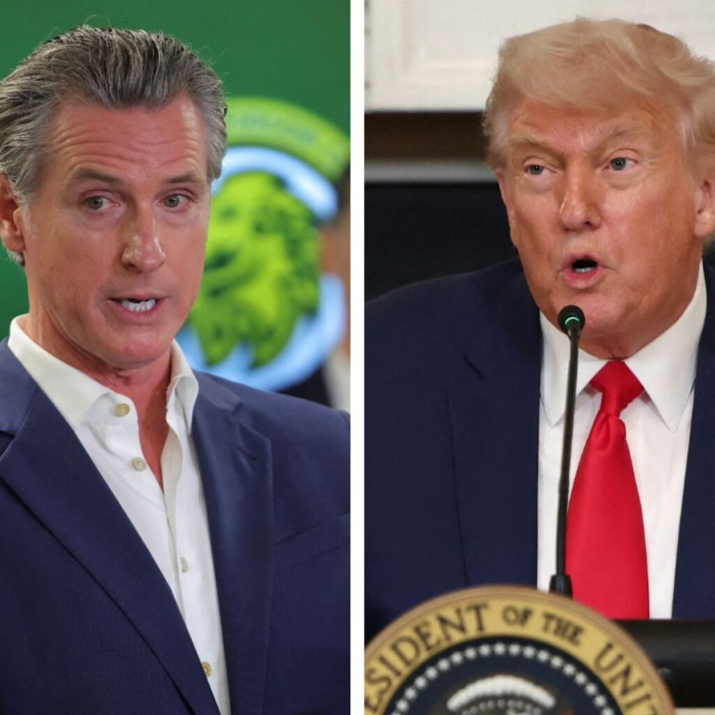 Montagem mostra o governador da Califórnia, Gavin Newsom, e o presidente dos EUA, Donald Trump