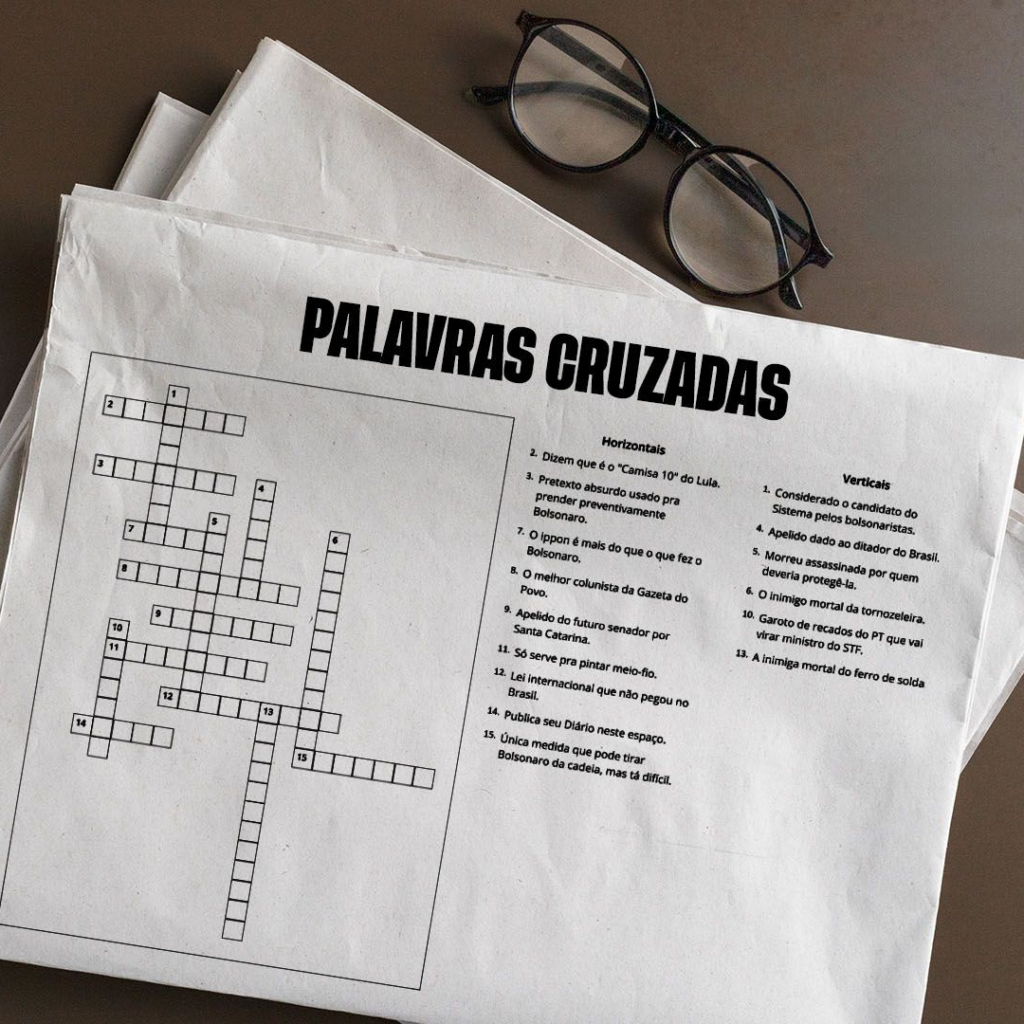 Você já entendeu que sou fã de palavras-cruzadas, né? Sou. Sempre fui. Desde pequeno. Quer me distrair? Me dê um livrinho de palavras-cruzadas e uma caneta Bic. Sou desses. Então imagine a minha felicidade quando o filho do ex-presidente Jair Bolsonaro, Jair Renan, ao ser perguntado sobre quais livros teria levado para o pai na prisão (ilegal, imoral, injusta, etc.), respondeu: “Palavras-cruzadas”. Ou será que foi “caça-palavras”? Agora não lembro nem importa.