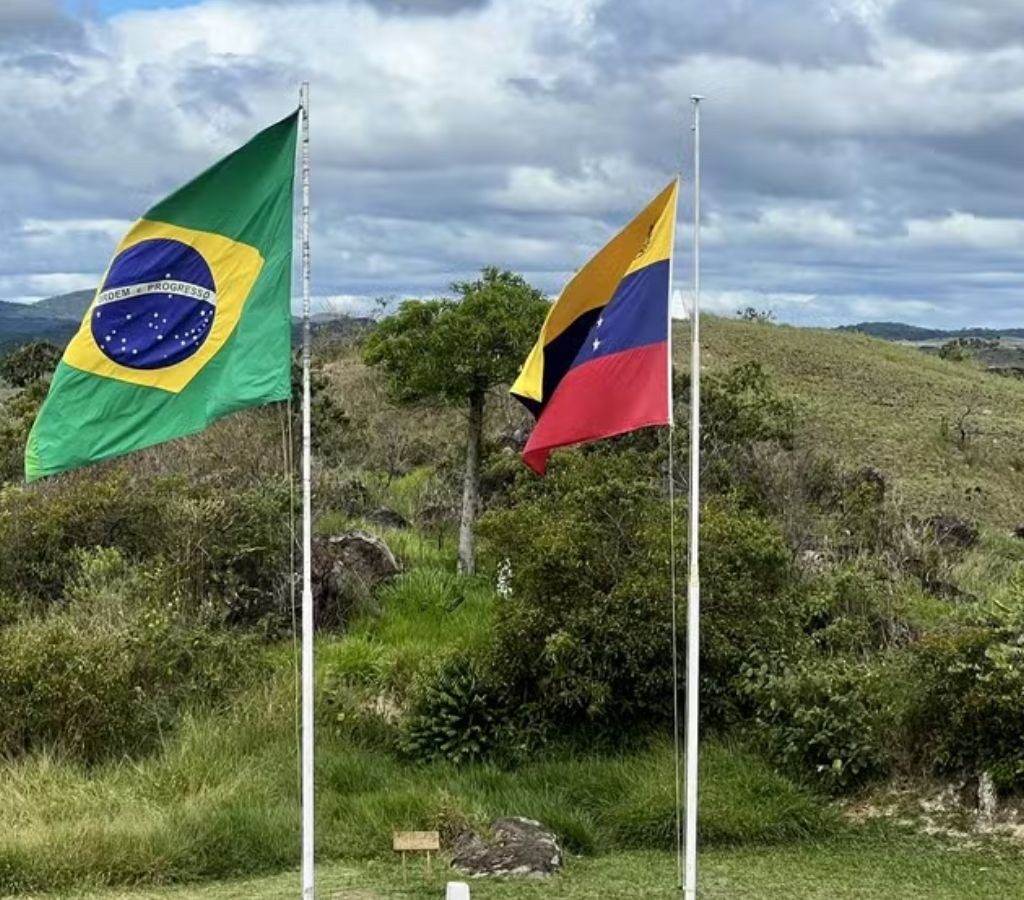 Bandeira do Brasil com a Venezuela na fronteira