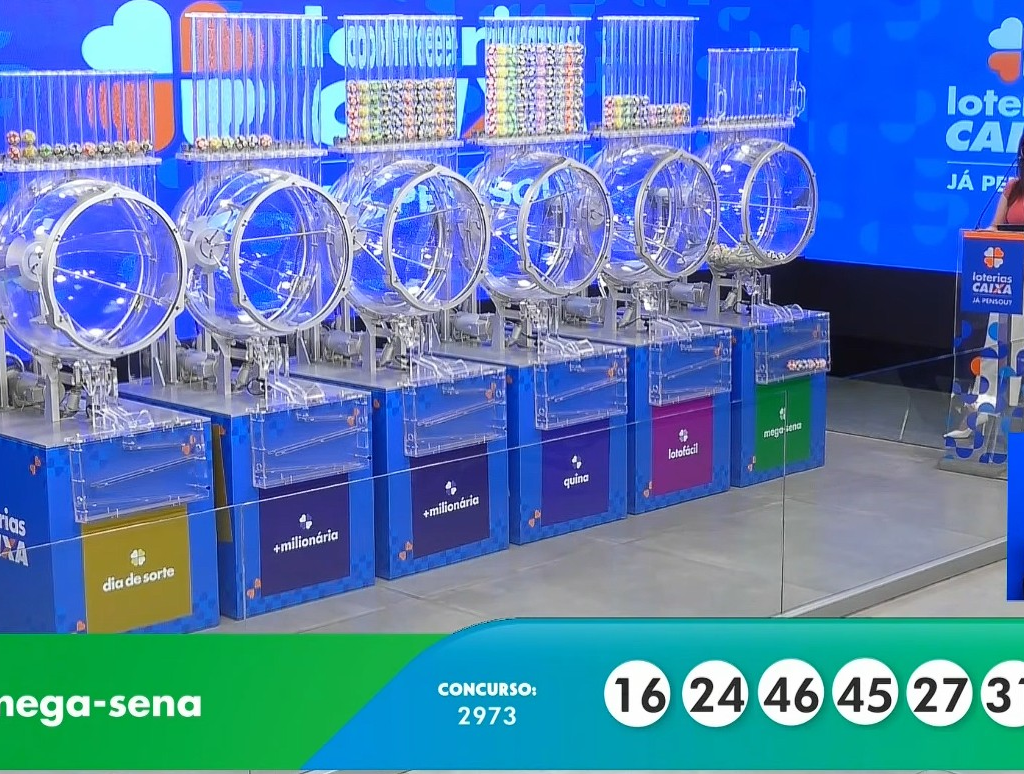 O sorteio do concurso 2.973 da Mega-Sena foi realizado na noite deste sábado (14), em São Paulo. O prêmio de R$ 62.201.742,02.