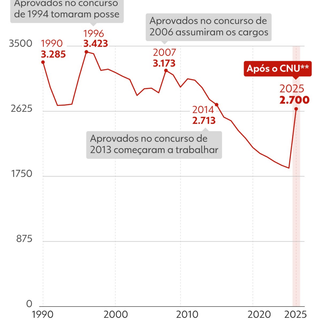 Em dezembro do ano passado, 829 novos Auditores-fiscais do Trabalho (AFT) tomaram posse após aprovação na primeira edição do Concurso Nacional Unificado (CNU). Com isso, o efetivo da carreira passou de aproximadamente 1,8 mil para cerca de 2,7 mil profissionais, o maior número registrado nos últimos 10 anos.