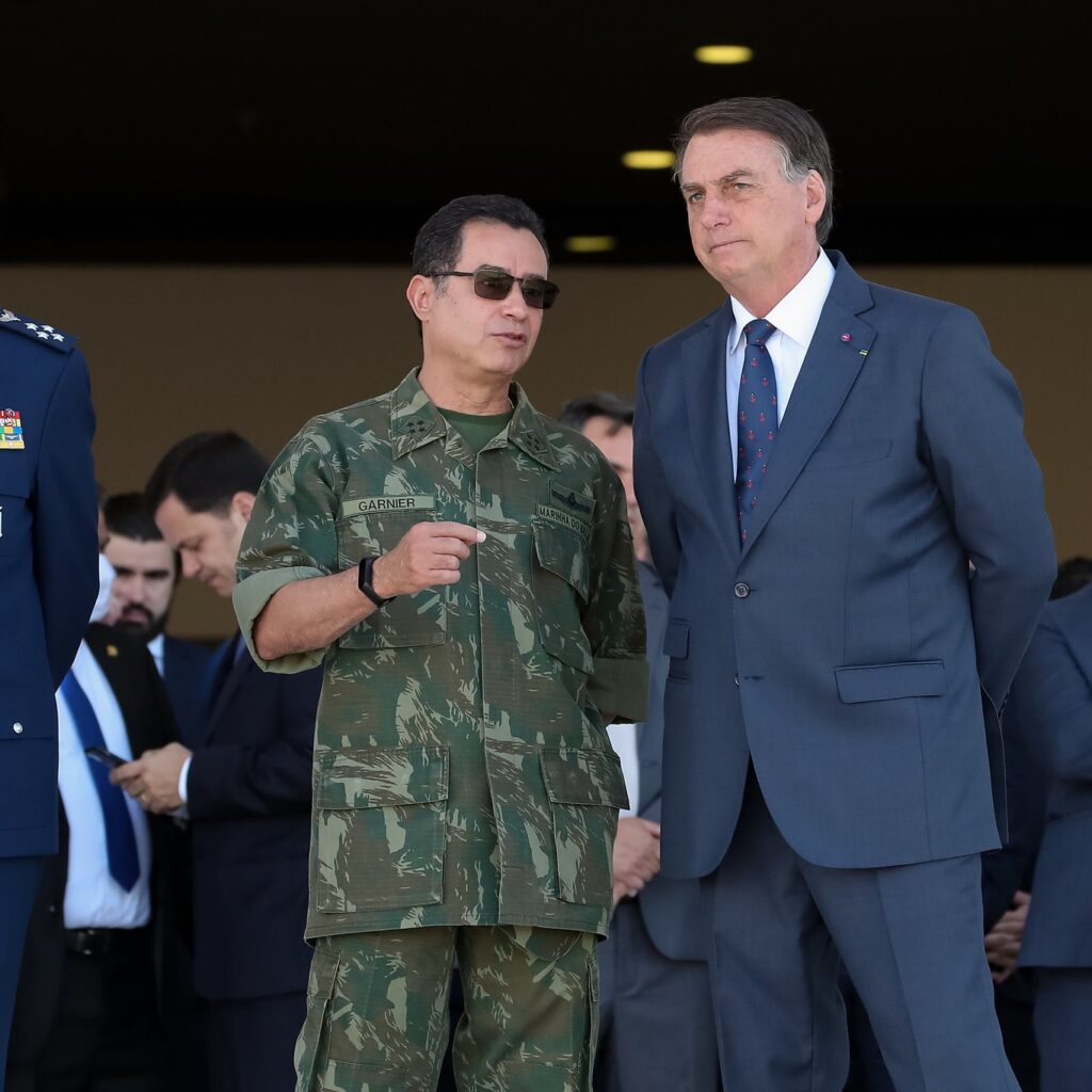 Comandante da Marinha, Almir Garnier, e Bolsonaro durante desfile militar em Brasília – imagem de arquivo