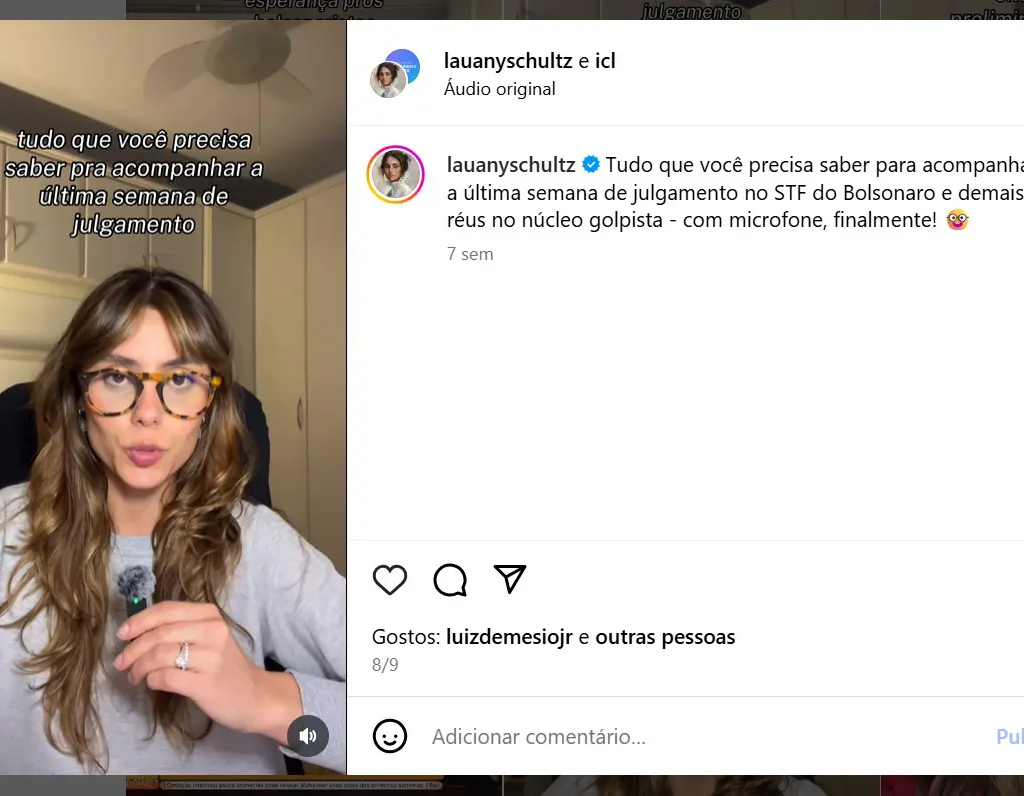 Especialista em Direito do Estado e “te mantenho informada” são as informações da sua biografia no Instagram, onde tem 170 mil seguidores. Antes das publis, Lauany postava indicações de livros, estilo de vida e feminismo com algumas críticas ao governo anterior. Hoje é uma parceira da ICL e contratada para divulgar o Luz para Todos e o PL 1087/2025, que visa isentar do Imposto de Renda (IR) de quem ganha até R$ 5 mil.